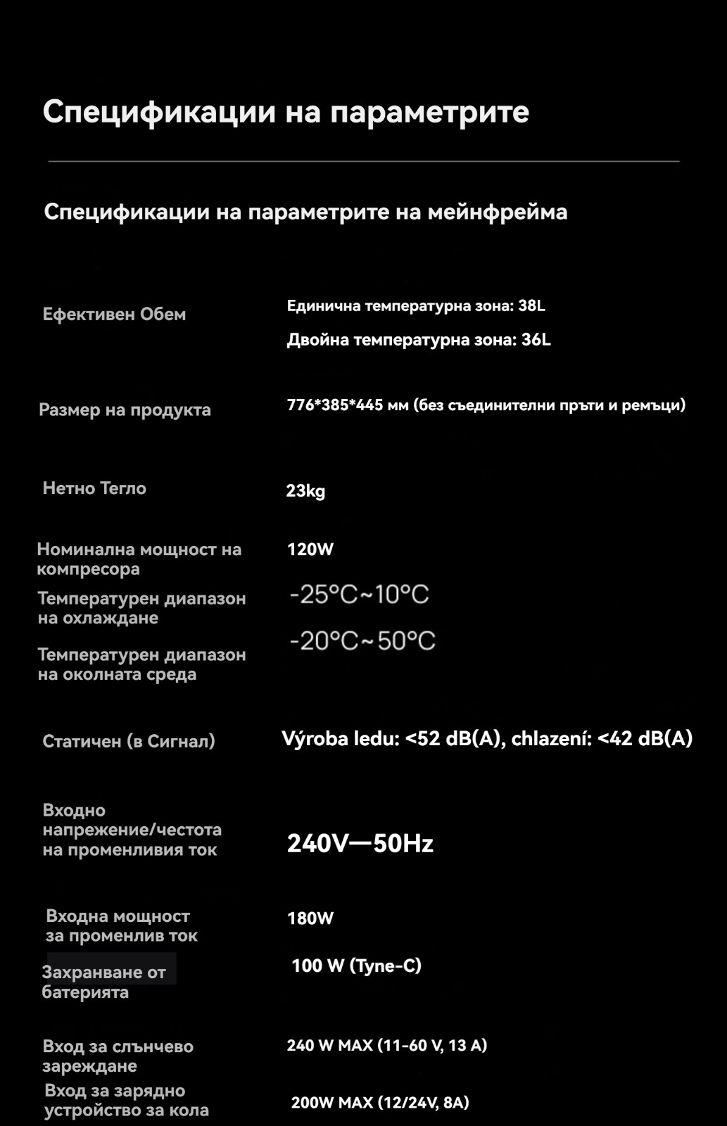 Характеристики на продукта
